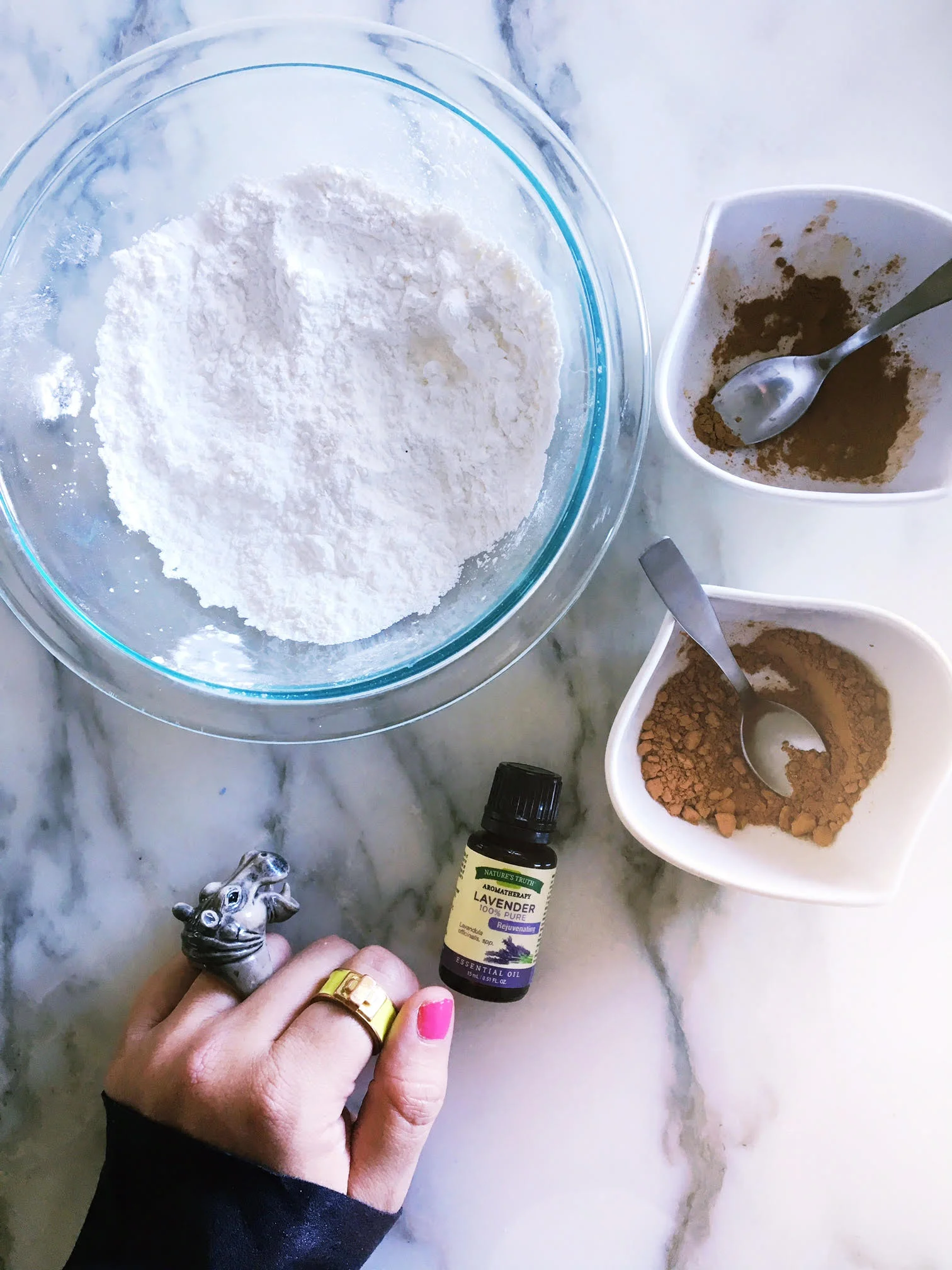 I actually mixed both the cocoa powder and cinnamon into my cornstarch for my hair color!