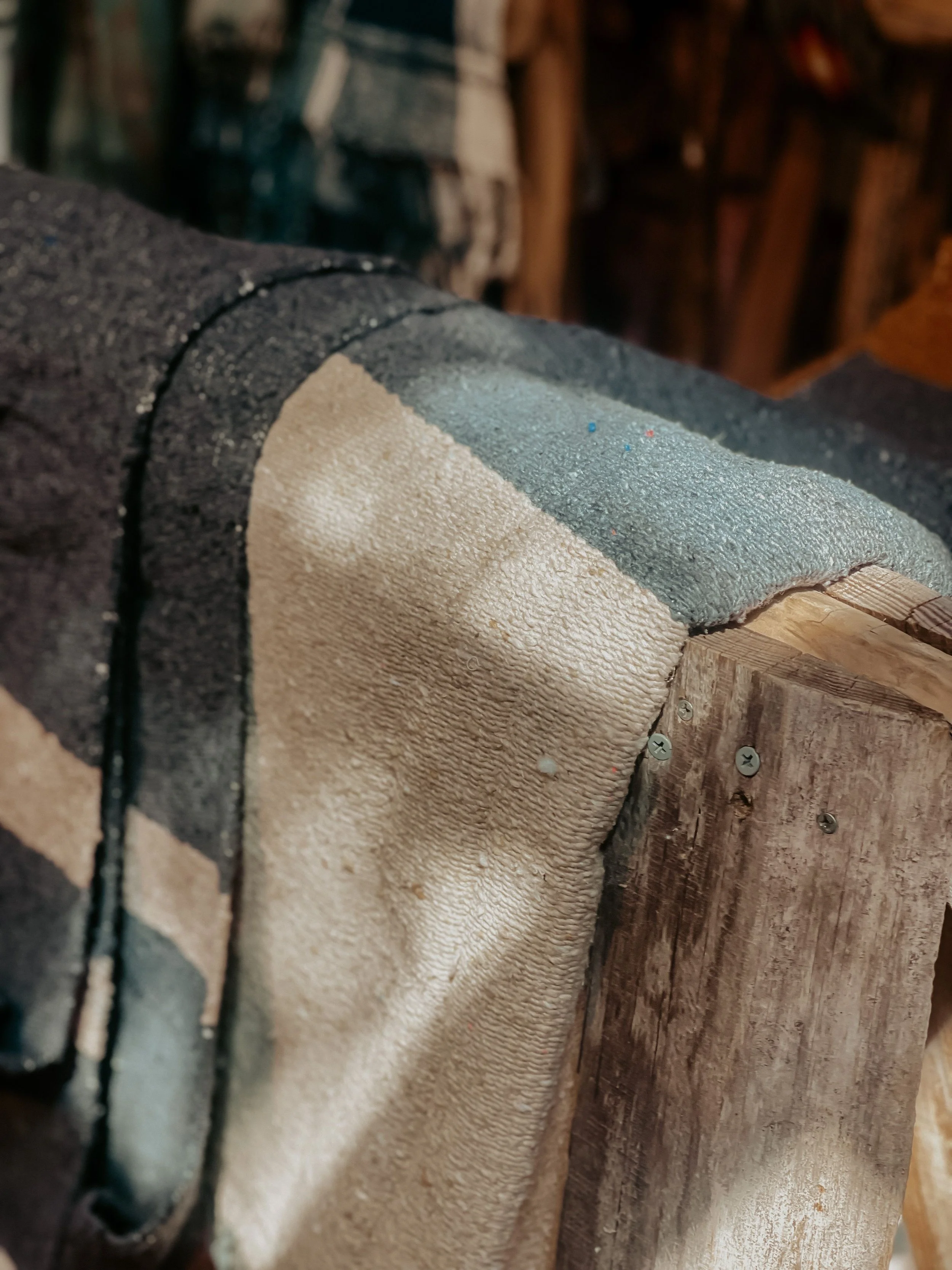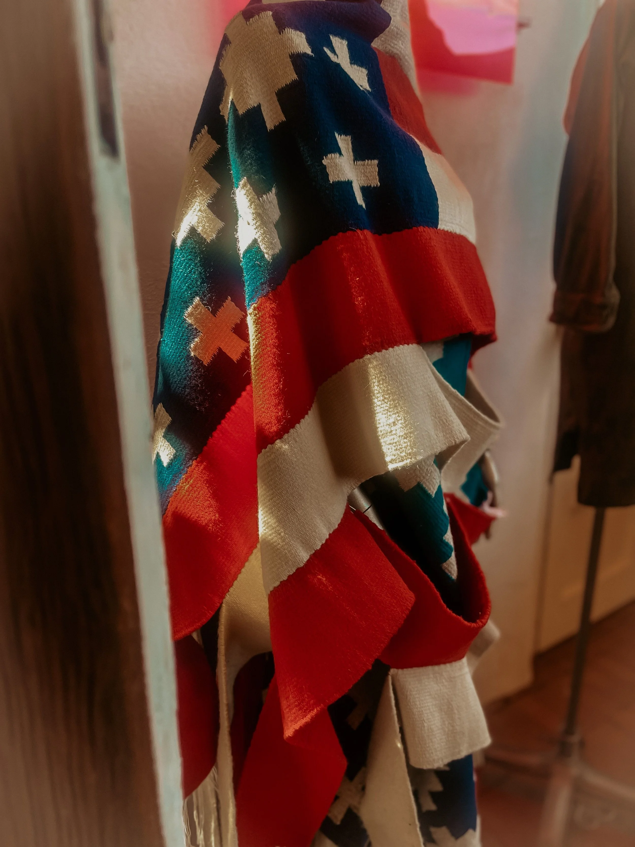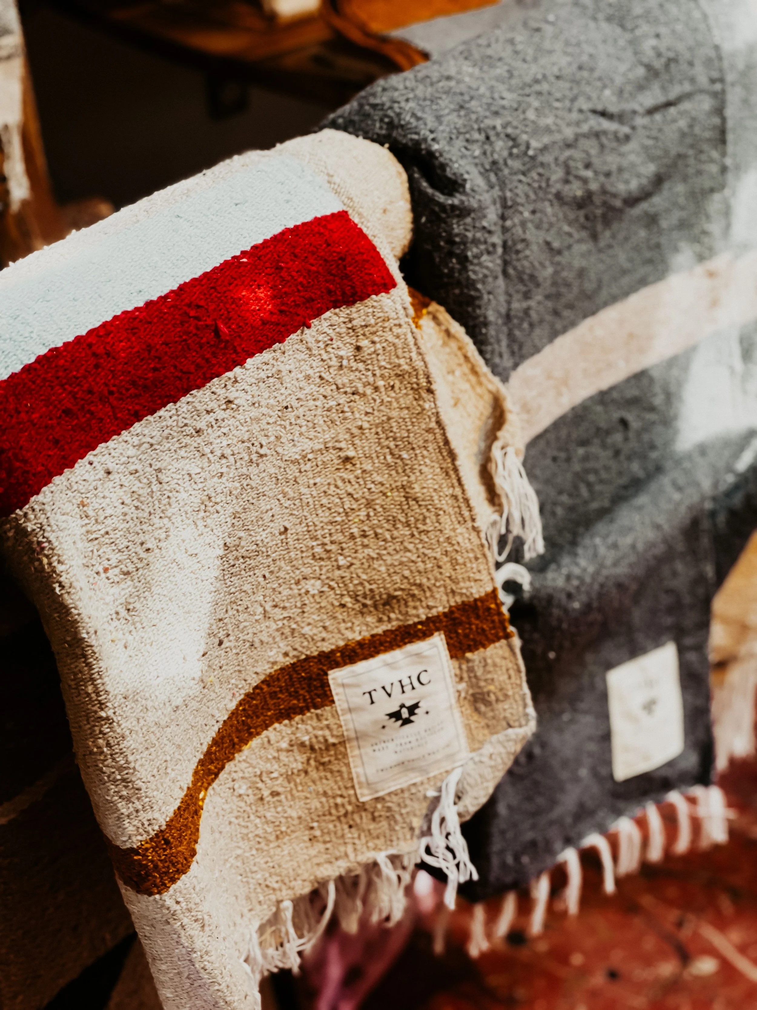 We purchased 4 of the Iron Ridge Serape Blankets from Thundervoice Hat Co. at 4kinship . Iron Ridge is their sixth design of recycled fiber, modern-day, Serape. The TVHC family teamed up with a family of wood pedal loom weavers in Tlaxcala Mexico near the region their father who is of Totonac descent. Their Totonac and Diné lineage meet together in this design to bring you the modern-day Iron Ridge Serape. The mustard, charcoal, and beige is just so wonderful together! And we are excited to snuggle up with these in our backyard by the fire this autumn. These will be so nice to offer to guests too that visit so they can bundle up by the fire too and we can eagerly share these stories of why supporting Native owned businesses is important to us!