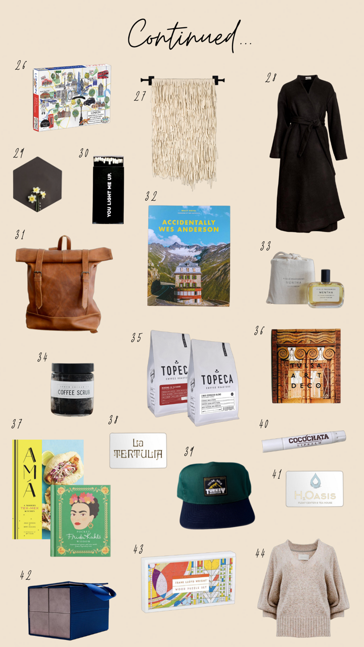 Accidentally Wes Anderson by Wally Koval- Discover the most interesting and idiosyncratic places on Earth. Inspired by the unique vision of director Wes Anderson’s films, this book travels to every continent to tell the extraordinary and unexpected true stories behind more than two hundred stunning locations. I forget that you can purchase so many fun books from The Philbrook Museum Shop! Be sure to check out their work by local photographers right now inspired by the current exhibition Accidentally Wes Anderson! Their prints are for sale!